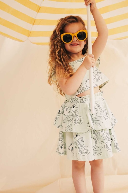 Dear Sophie sievä hame merihevonen-kuosilla. Hame on pohjaväriltään herkullinen minttu. Hame on kiva yhdistää erilaisten yläosien kera.