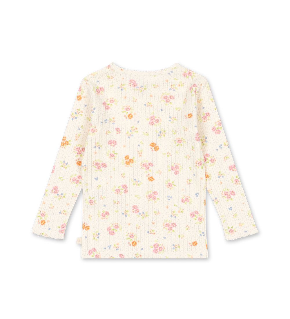 Konges Slojd pehmeästä luomupuuvillaisesta trikoosta valmistettu paita. Paidan pohjaväri on heleä kermanvaalea ja siinä on suloisia pastellisia kukkia sekä pilkkuja.