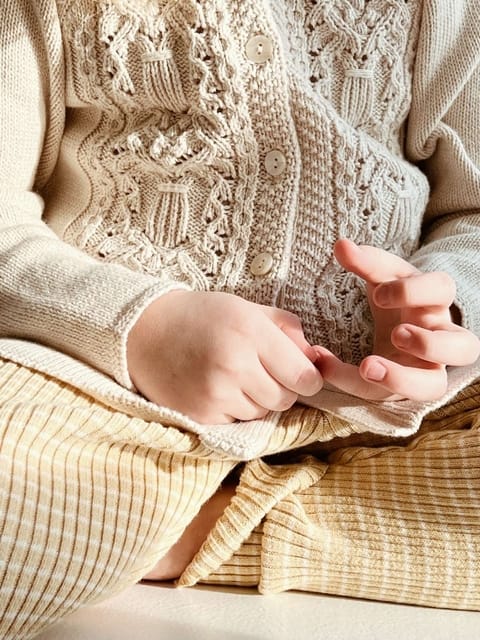 Konges Slojd suloinen neuletakki. Helmassa frilla. Tämä neuletakki on helppo yhdistää erilaisiin asuihin niin arkeen kuin juhlaan.