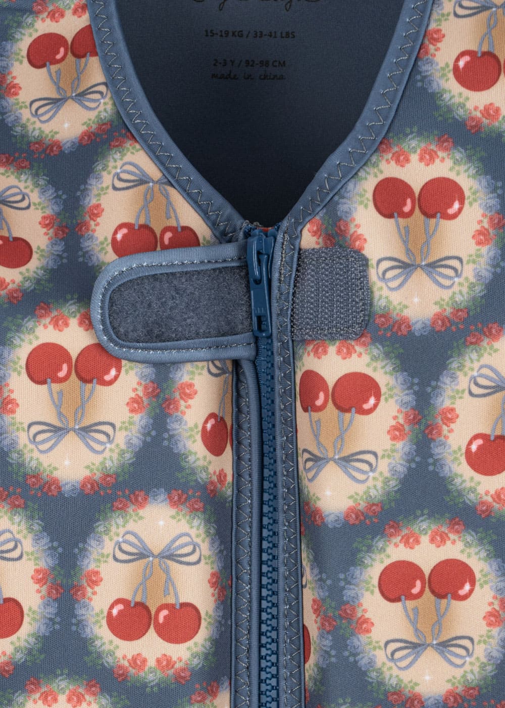 Glitter float vest with tulle shoulder frills and seqwuin details. A float vest is the perfect swim accessory when your little ones are just beginning to splash around. It adds natural buoyancy and helps them get comfortable in the water while learning to swim on their own. Our float vests are designed with inside foam sticks that can be adjusted according to the child’s skills and needs. The float sticks can easily be removed one by one as your child develops their swimming skills. Always remove the sticks in pairs starting with 1 & 1, then 2 & 2 and so on until your child is completely adapted to swimming by themselves. Once the child is secure and comfortable in the water, the buoyancy sticks can be removed all together. Designed with both zipper and velcro closure. Features a buckled safety crotch strap so that your child can never slip out of the vest.