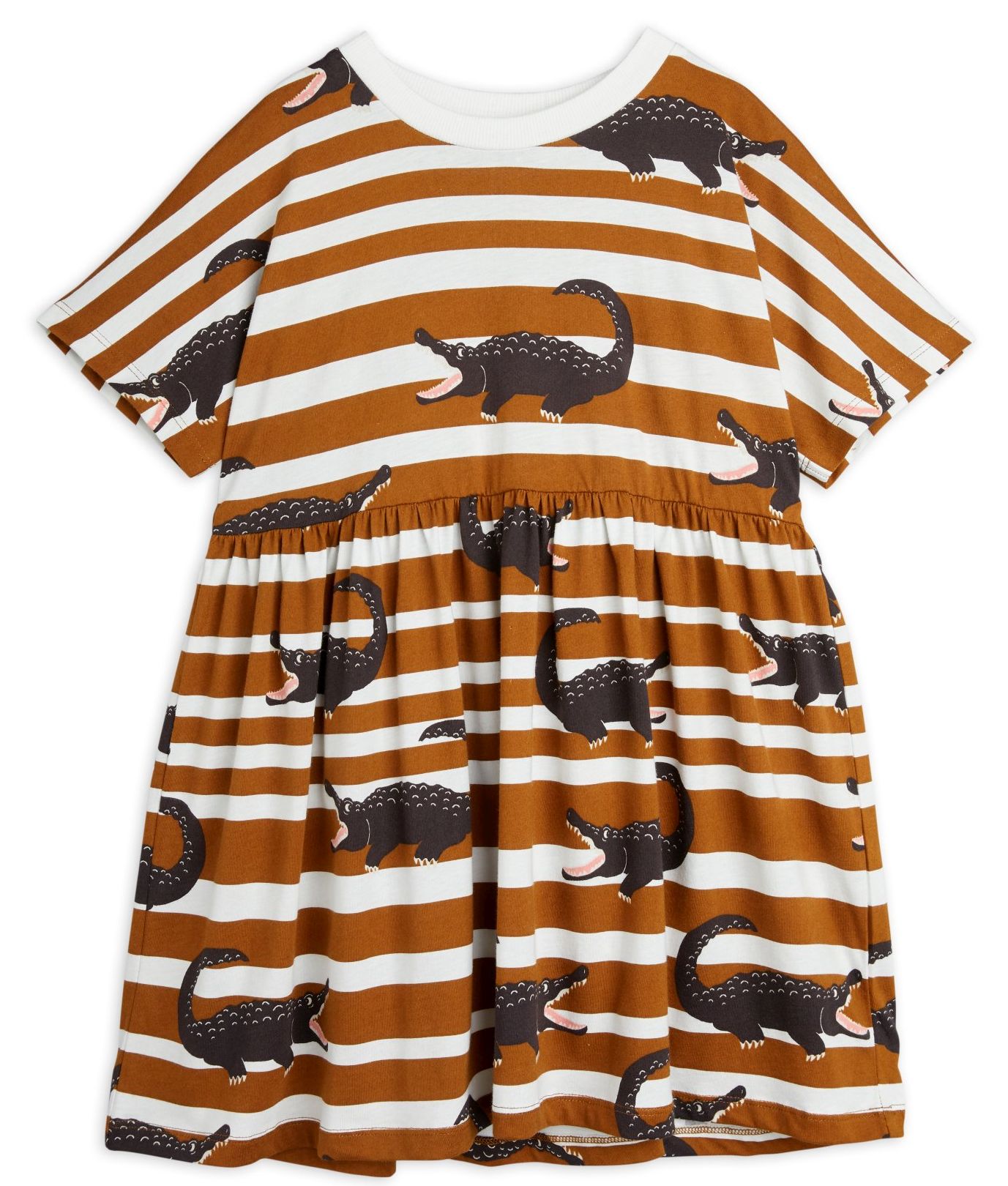 Mini Rodinin raidallinen mekko, jossa on krokotiileja.