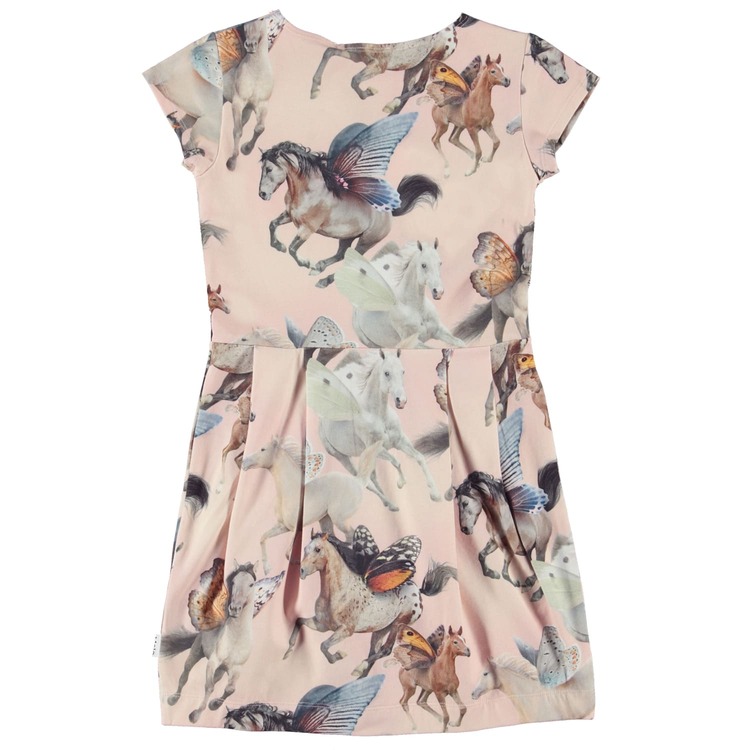 Molo Kids kaunis trikoo mekko, jossa hevoset lentävät perhosen siivin.