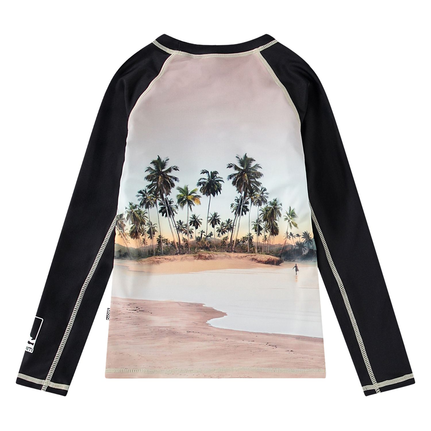 Molo Kids uv-suojattu paita upealla rantamaisemalla. Tämä hieno UV-paita suojaa lapsesi auringon säteiltä ja on ilo silmälle. Paita on valmistettu UV-suojatusta uimapukukankaasta. Yhdistä paita Molo Kids uimahousuihin. Paitaa voi käyttää niin uimarannalla kuin muutoin aurinkoisella säällä leikkiessä.