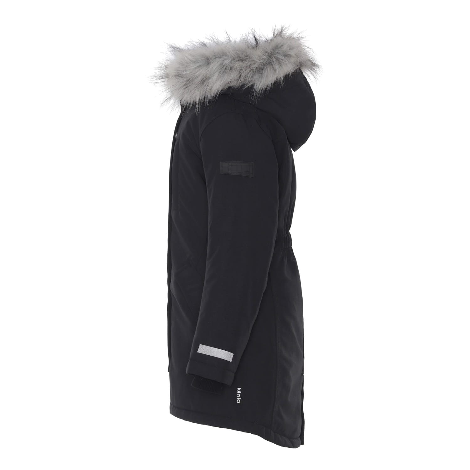 Molo Kids Peace musta toppatakki. Malliltaan tämä Molon talvitakki on ajaton ja tyylikäs vartalonmyötäisellä leikkauksellaan. Takki on malliltaan kapea, loistava hoikalle lapselle. Talvitakissa on niukka mitoitus, joten valitse kokoa suurempi.