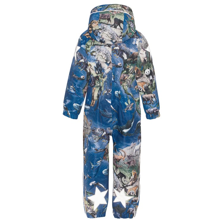 Molo Kids  välikausihaalari yhdellä vetoketjulla. Upea Living Wildlife kuosi. Haalarissa on irrotettava huppu ja  jalkalenkit. Haalarin etukappaleessa on liukas vuori ja takakappaleessa on verkkovuori.  Haalarin hyvä leikkaus takaa  kauniin istuvuuden myös hoikille lapsille. Markkinoiden parhaat heijastimet näkyvät ja luovat turvallisuutta.