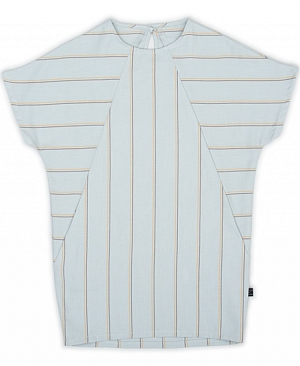 Monkind kaunis A-linjainen mekko. Mekko on harmaaseen taittava vaaleansininen ja siinä on ruskeat ja okrat raidat.