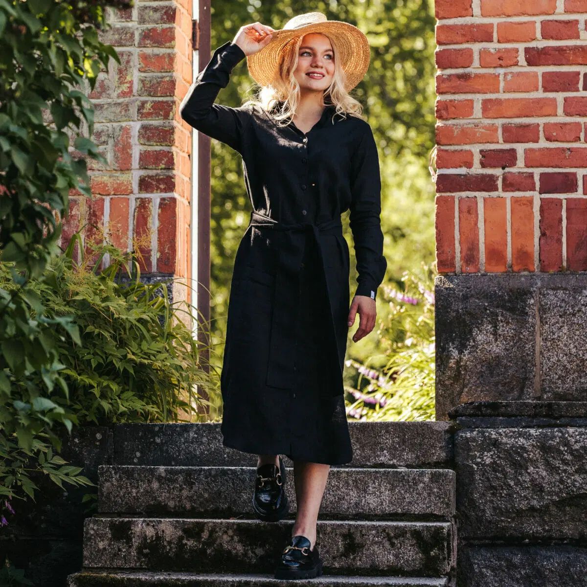 Täydellinen toimistovaate on täällä! Chloe Dress tiivistää kaiken, mitä siistiltä arkiasulta voi toivoa – mukavuutta, ryhdikkäitä linjoja ja laadukkaan, hengittävän materiaalin. Kaulukset ja skarpit leikkaukset tekevät mekosta ryhdikkään. Koko mekon pituuden kattava napitus mahdollistaa monipuolisia tapoja pukea midimittainen mekko. Vyötärölle asettuva kankainen vyö vain lisää sen monipuolisuutta sekä mahdollistaa säätää istuvuutta kantajalleen sopivaksi. Pellavan kevyt materiaali varmistaa niin mukavuuden kuin helman liikkuvuuden, joita halkiot mekon sivuilla tehostavat. Yhdistä siisteihin nilkkureihin tai rouheisiin maihareihin, läppärin vievään totebagiin ja toimistopäivän asu on valmis.