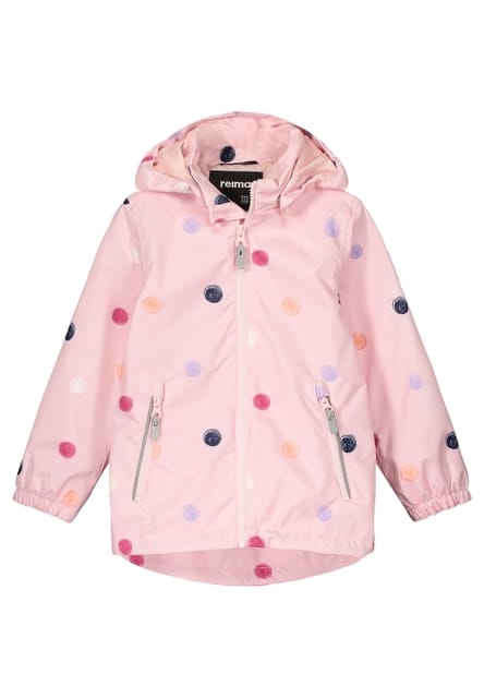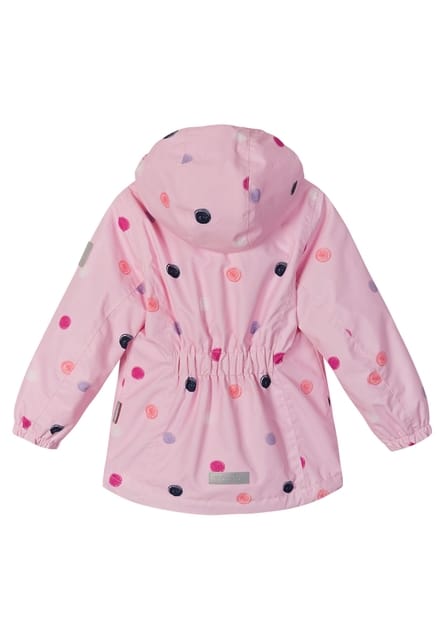 Lasten kaunis Reiman Anise välikausitakki suloisessa Pale rose värissä. Tämä lasten välikausitakki suojaa lasta tehokkaasti viimalta ja sateelta. Takissa on hengittävä, vettä- ja likaahylkivä materiaali. Takissa on teipatut saumat. Sileäpintainen polyesterivuori tekee pukemisesta helppoa. Irrotettava huppu ja heijastavat yksityiskohdat lisäävät turvallisuutta ulkoiluun. Vetoketjulliset taskut pienille aarteille. Takissa on joustavat hihansuut. Takana kuminauha tuo hyvän istuvuuden. Takissa on kaunis muotoiltu leikkaus ja helmassa säädettävä kuminauha kiristys.