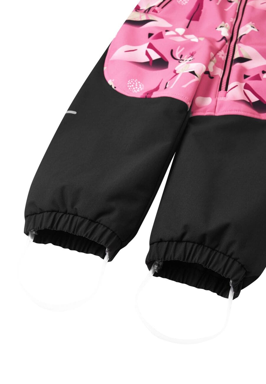 Reiman softshell haalari on vedenpitävä, hengittävä sekä tuulenpitävä ja haalarin alaosa on valmistettu erittäin kestävästä materiaalista. Reiman softshell haalari on valmistettu teknisestä kolmikerrosmateriaalista, jonka sisäpuoli on pehmeää ja miellyttävää fleecea. Haalarissa on irrotettava, neppareilla kiinnitettävä huppu, joka suojaa tuulelta sekä jalkalenksut. Vetoketjutaskuun voi sujauttaa aarteet. Vetoketjujen vetimien päissä on heijastimet ja niskalappuun voi kirjoittaa lapsen nimen.