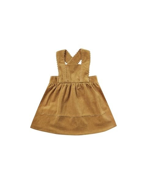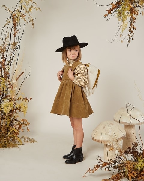 Rylee + Cru hieno samettinen mekko arkeen ja juhlaan. Väri upea goldenrot, joka on hieman kultaan vivahtava vaaleahko ruskea. Mekko on pehmeää, kapeaa vakosamettia ja joustaa hyvin. Oikein miellyttävä lapsen käyttää. Sievät simpukkatereet somistaa mekkoa.