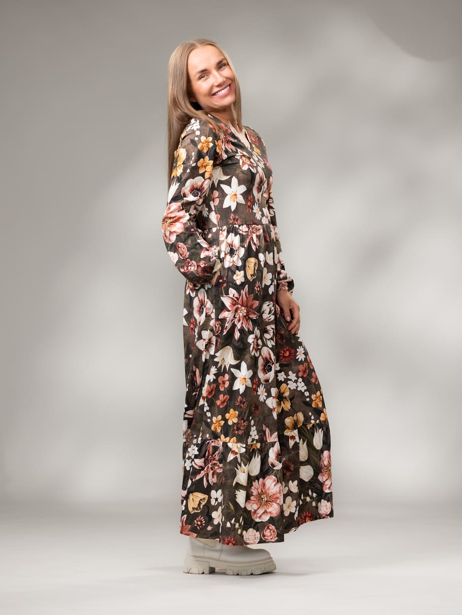 Versonpuodin upea Seljamekko kauniilla Ritarinkannus -kuosilla. Tässä Versonpuodin mekossa on upeat sävyt ja -kukkakuosi. Tämä on valloittava!
