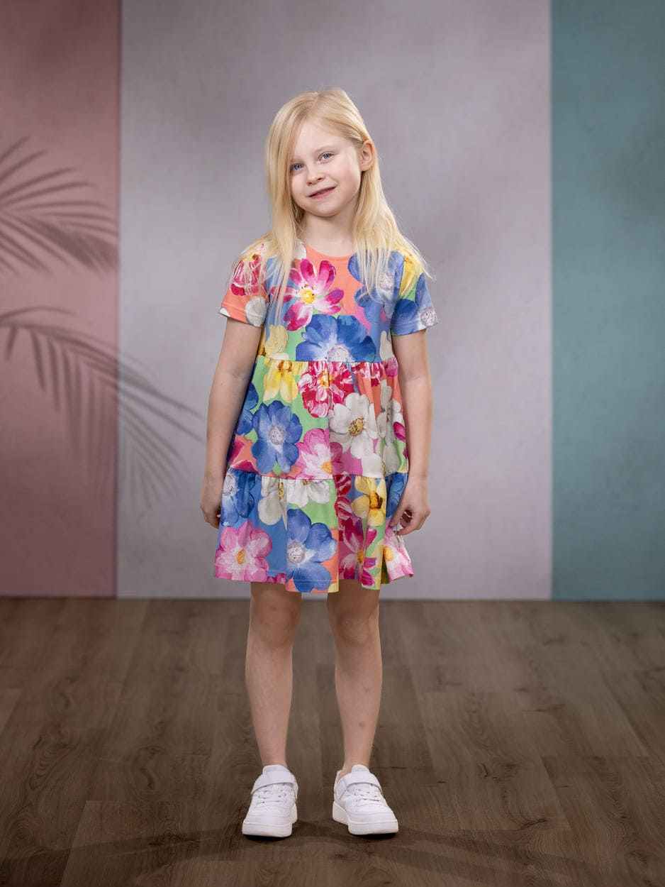 Tämä Versonpuodin mekko sopii kivasti niin arkeen kuin juhlaan. Tässä trikoisessa mekossa lapsen on mukava olla ja leikkiä tai juhlia.